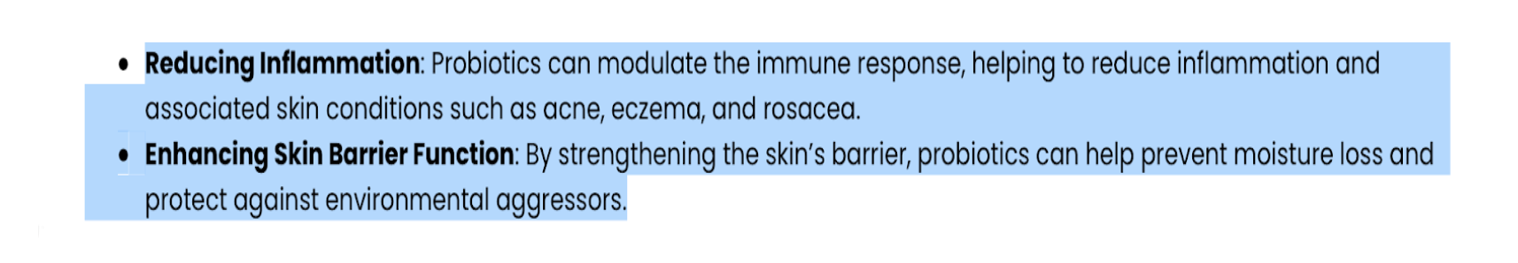 (Công dụng của Probiotics trong hỗ trợ giảm mụn – Nguồn: The Skin Investment Clinic)